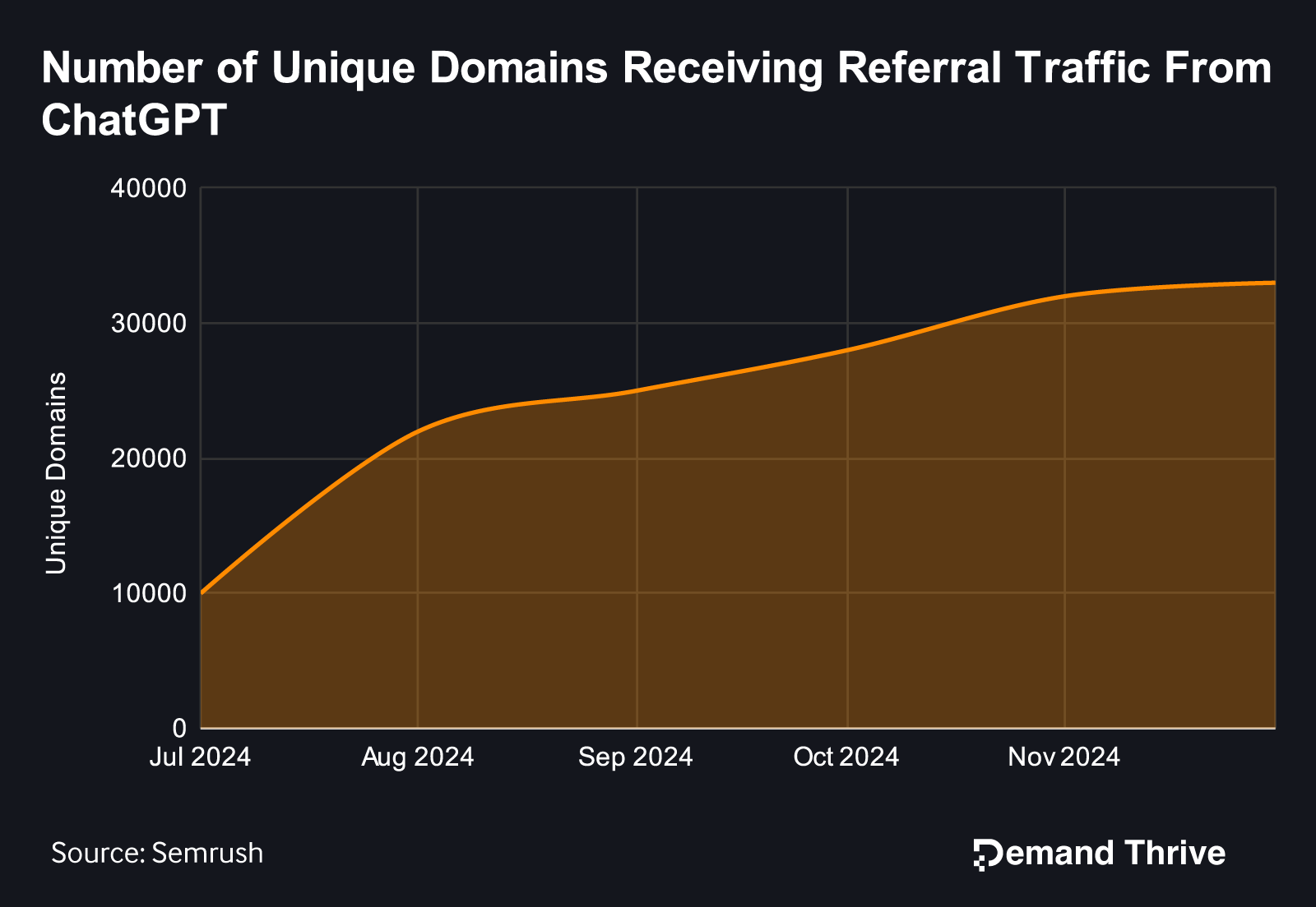 A recent study by Semrush found that ChatGPT is increasing referral traffic for a wide range of domains, indicating that GEO success is highly valuable for businesses to achieve.